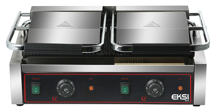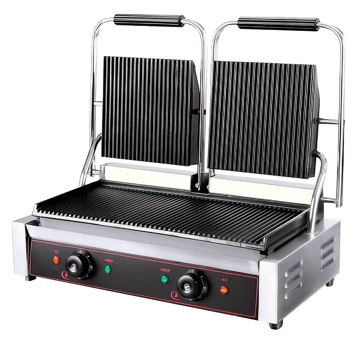 2 зоны нагрева; верхн. поверхность одна гладкая, одна рифленая; нижняя поверхность одна гладкая, одна рифленая; 220 В; 3.6 кВт