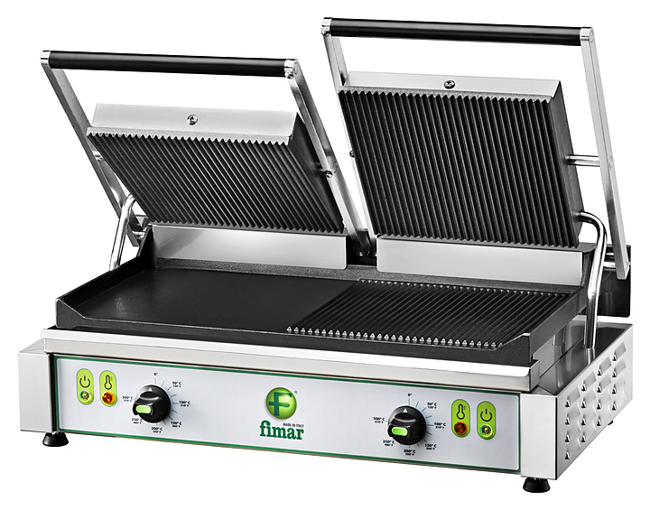2 зоны нагрева; верхн. поверхность рифленая; нижняя поверхность одна гладкая, одна рифленая; 220 В, 380 В; 3.6 кВт