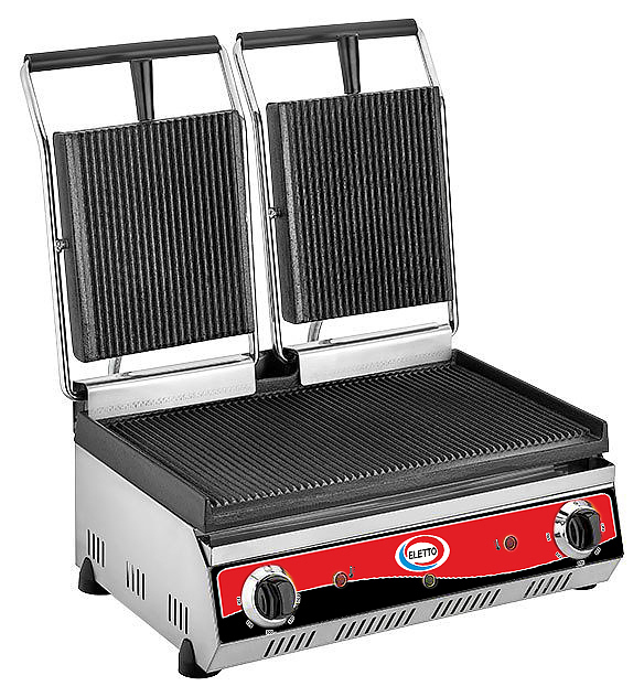 2 зоны нагрева; верхн. поверхность рифленая; нижняя поверхность рифленая; 220 В; 2.4 кВт