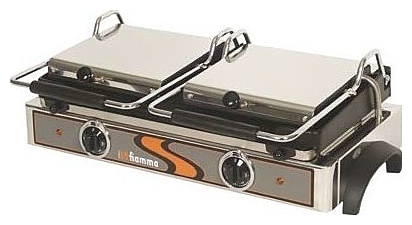 2 зоны нагрева; верхн. поверхность рифленая; нижняя поверхность одна гладкая, одна рифленая; 220 В; 3.6 кВт